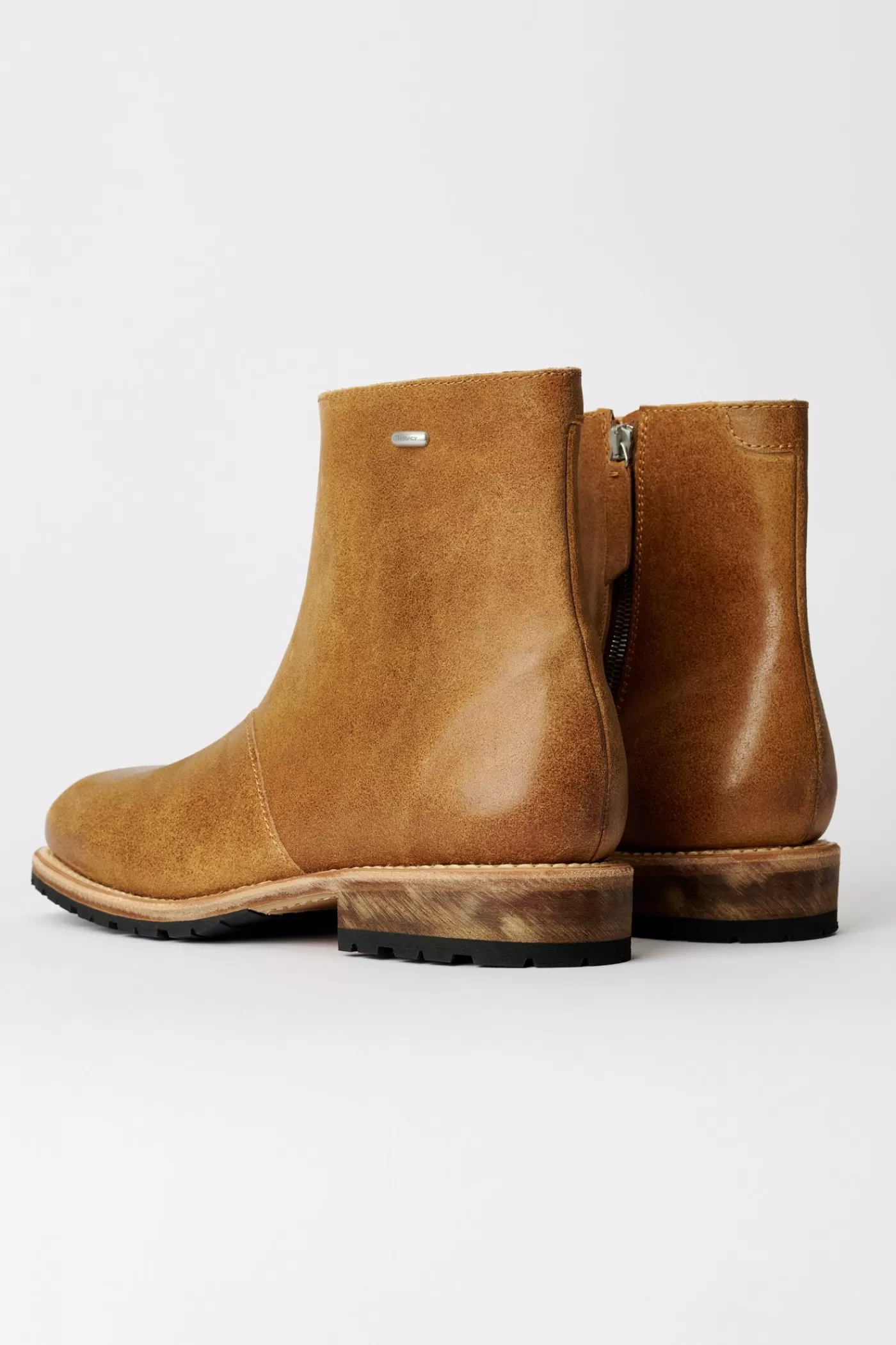 Our Engine Boot in Sunset Sand Primal Suede. Produced in a Spanish calf leather, the mid cut Engine Boot features a lugged Vibram sole, a Lampo side zip and a metal Our Legacy rivet.
