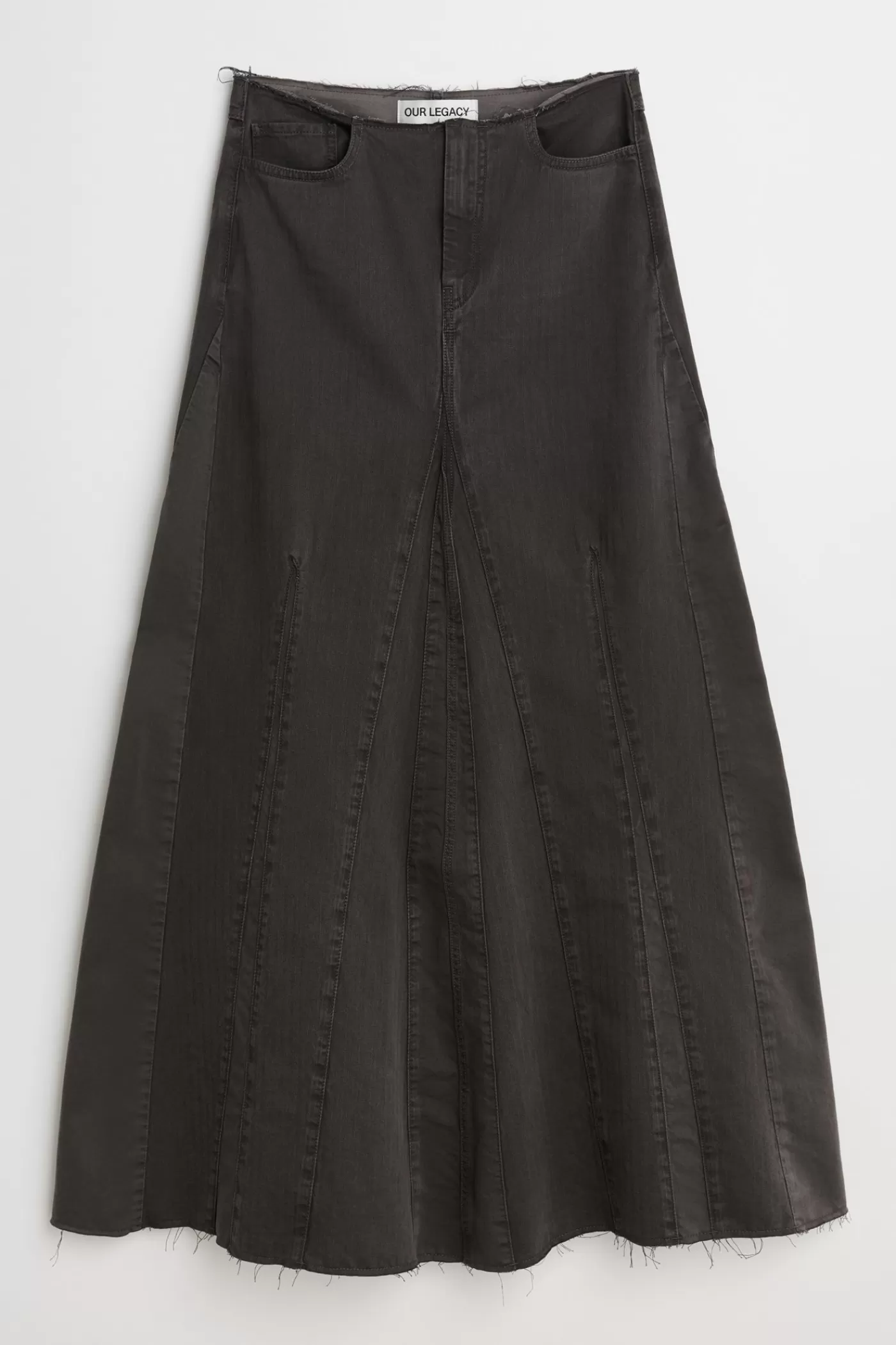 Our Rebel Skirt in Ash Black Herringbone. Produced in an Italian pigment dyed cotton herringbone fabric, the womens Rebel Skirt has a relaxed a-line silhouette and features a panelled construction, two front pockets, a hook and eye closure and a raw edged hem and waistband.